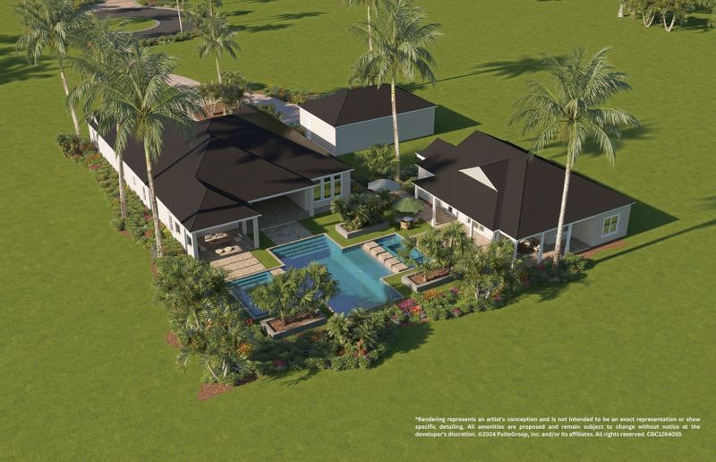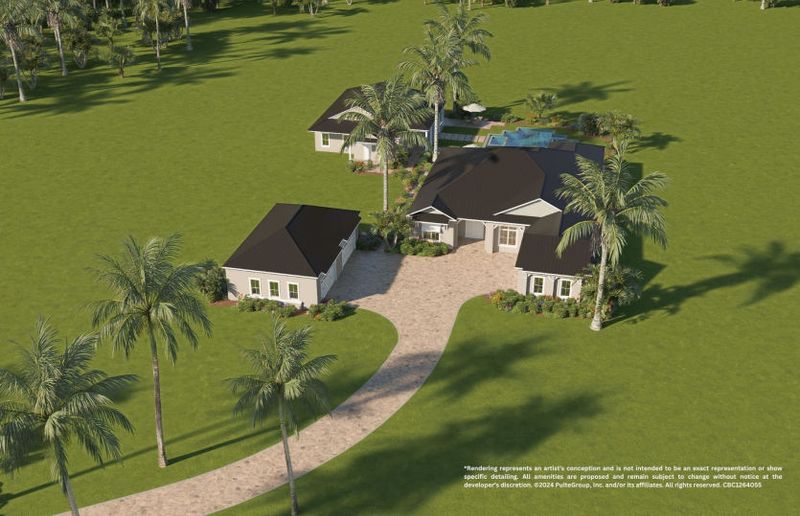 Explore this thoughtfully designed new floor plan, where the spacious main house features 4 bedrooms and 3.5 baths, with the gourmet kitchen and expansive gathering room at the heart of the home - perfect for everyday living and seamless entertaining. A private guest house offers comfort and flexibility for extended stays, while a detached 4-car garage adds convenience and practicality.