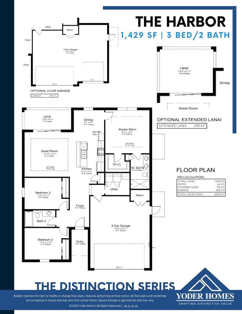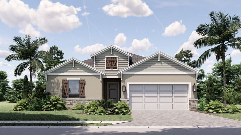 The Harbor is a smart, efficient 1,429 SF floor plan offering 3 bedrooms and 2 bathrooms, designed to maximize livability in a beautifully streamlined footprint. The layout opens into a welcoming main living area where the Great Room, kitchen, and dining space flow together, creating an open-concept feel that’s ideal for both everyday life and entertaining. The kitchen is centrally located, making it easy to stay connected while cooking, hosting, or spending time with family. The Owner’s Suite is thoughtfully positioned for privacy and includes a spacious bath along with a generous walk-in closet, giving you a comfortable retreat. Two additional bedrooms are located on the opposite side of the home near a shared full bath—perfect for guests, children, or a dedicated home office. The plan also includes a dedicated utility/laundry space for convenience and organization. Outdoor living is a standout with a covered lanai, plus the option to extend the lanai for even more room to relax and enjoy Florida living. For buyers who need more space for storage or vehicles, The Harbor also offers an optional 3-car garage layout. With elevation options including Traditional (Elevation A) and Craftsman (Elevation B), The Harbor gives you flexibility in both style and function while keeping the build efficient and attainable.