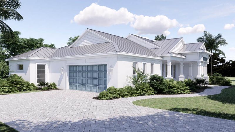 The Monaco Plan is a thoughtfully designed 1,836 SF home in our Metro Series that balances open concept living with smart separation for privacy. With 3 bedrooms, 2.5 baths, and a 2-car garage, the layout centers around a bright kitchen, dining area, and great room that flow seamlessly together and open to a generous covered lanai for easy indoor-outdoor living. The owner’s suite is privately positioned on its own side of the home and includes a spacious walk-in closet and en-suite bath, while bedrooms two and three are located on the opposite wing with a shared full bath—ideal for family, guests, or a home office. A conveniently located powder bath for visitors and functional storage throughout make The Monaco a comfortable, efficient plan designed for everyday Florida living.