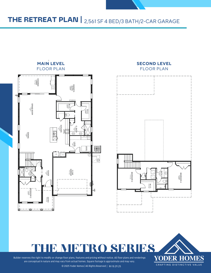The THE RETREAT floor plan features 4 bedrooms, 3 bathrooms and it has 2,561 square feet. This 2 story Casa floor plan starts at $999,000 and it offers 3 car garage. YODER HOMES - BOYL offers the THE RETREAT floor plan and many other floor plans to choose from in order to best suit your needs. The THE RETREAT floor plan is definitely a good home option for you and your family.