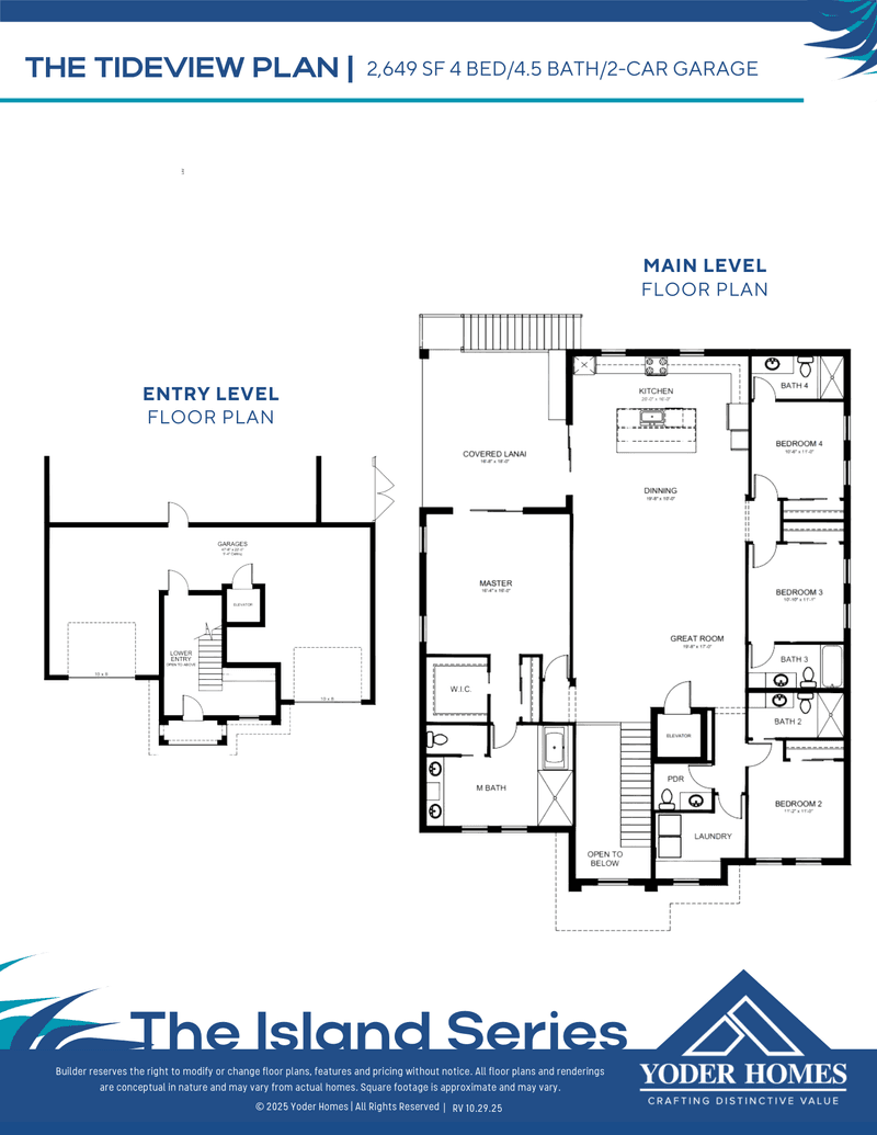 The THE TIDEVIEW floor plan features 4 bedrooms, 4 bathrooms and it has 2,649 square feet. This 2 story Casa floor plan starts at $1,544,000 and it offers 2 car garage. YODER HOMES - BOYL offers the THE TIDEVIEW floor plan and many other floor plans to choose from in order to best suit your needs. The THE TIDEVIEW floor plan is definitely a good home option for you and your family.