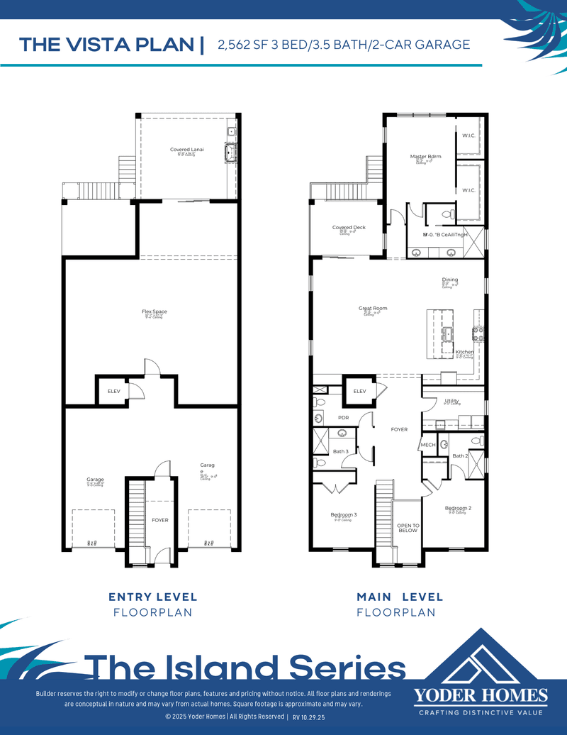 The Vista is a beautifully designed 2,562-square-foot Island Series home that pairs refined coastal architecture with thoughtful, storm-smart construction. Offering three bedrooms, three-and-a-half bathrooms, and a two-car garage, this plan is crafted for both comfort and resilience. An elevator provides convenient access to the main living level, where an open-concept great room, dining area, and designer kitchen flow seamlessly together for effortless entertaining. A versatile flex space adds adaptability for a home office, lounge, or guest retreat. Expansive covered outdoor living areas—including a covered lanai and elevated deck—extend the living space and invite year-round enjoyment of the coastal surroundings. Elegant, high-end finishes and carefully considered details throughout elevate The Vista into a home that balances luxury, functionality, and enduring island style.