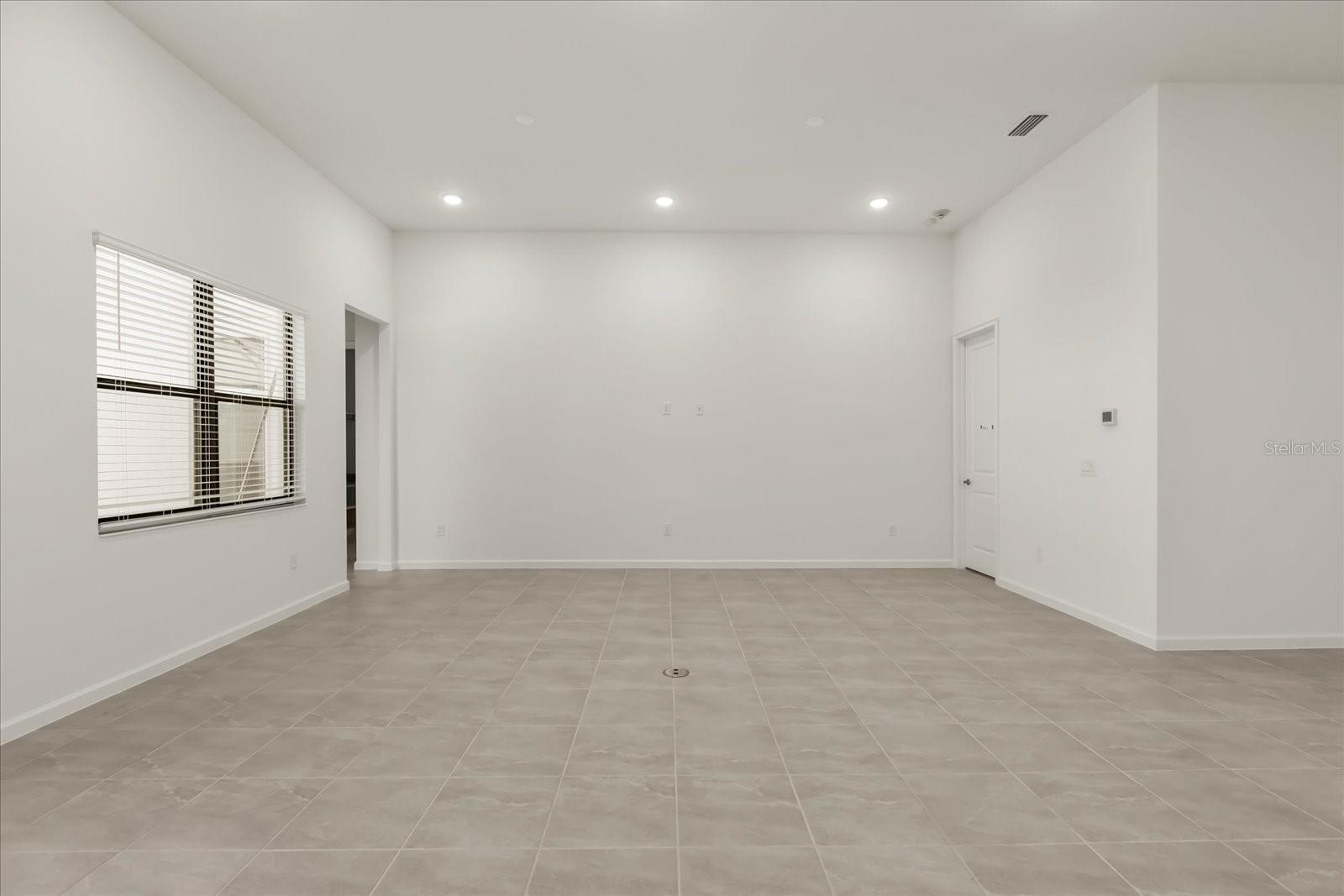 Características internas: Eat-in Kitchen, Kitchen/Family Room Combo, L Dining, Open Floorplan, Primary Bedroom Main Floor, Thermostat, Window Treatments