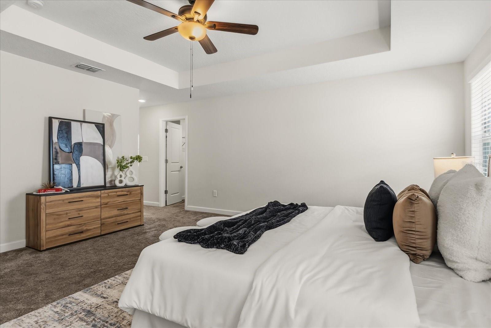 Características internas: Ceiling Fans(s), Eat-in Kitchen, Kitchen/Family Room Combo, Open Floorplan, PrimaryBedroom Upstairs, Tray Ceiling(s), Walk-In Closet(s)