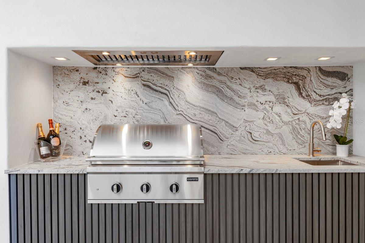 Características externas: Outdoor Kitchen, Rain Gutters, Sliding Doors