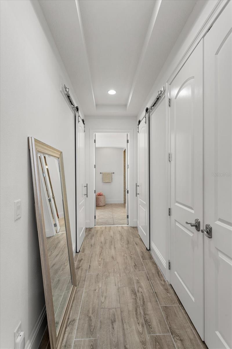 Características internas: Ceiling Fans(s), Coffered Ceiling(s), Crown Molding, High Ceilings, Kitchen/Family Room Combo, Open Floorplan, Primary Bedroom Main Floor, Solid Wood Cabinets, Stone Counters, Walk-In Closet(s), Window Treatments