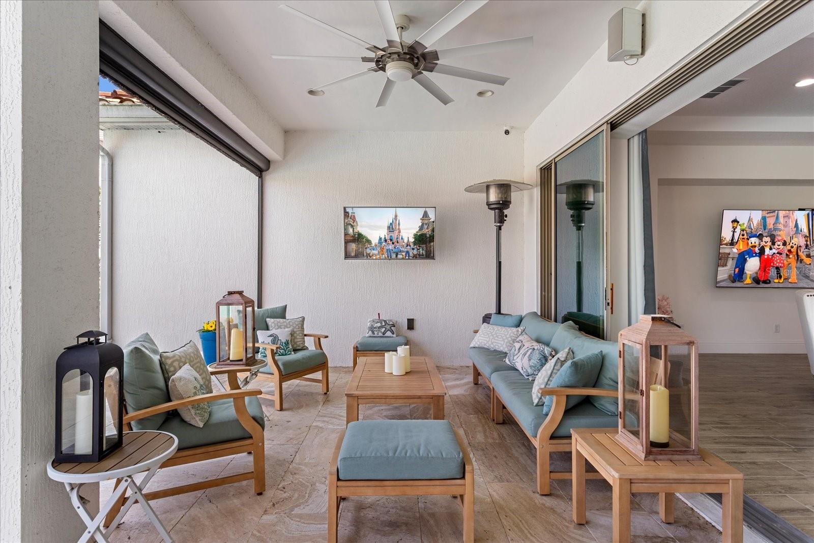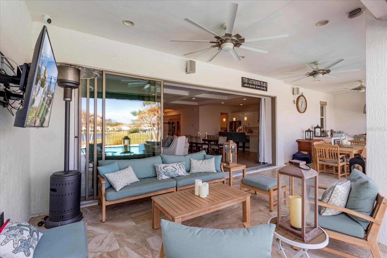 Características externas: Balcony, Outdoor Kitchen, Rain Gutters, Sidewalk, Sliding Doors