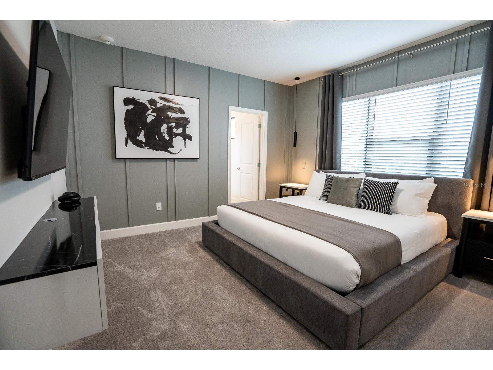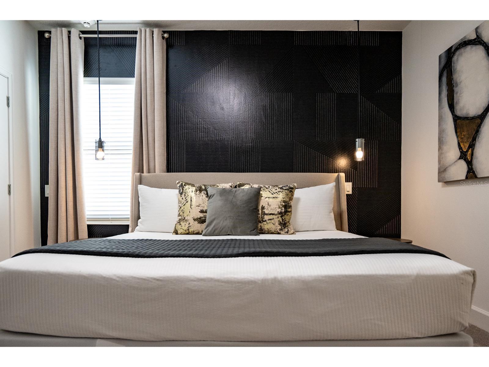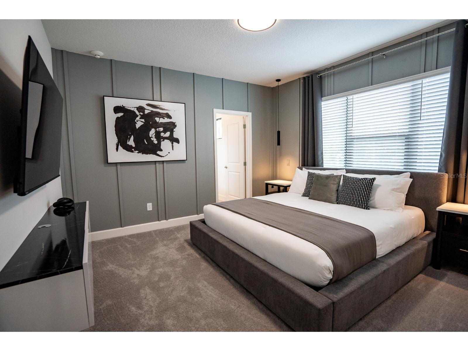 Características internas: Eat-in Kitchen, High Ceilings, Open Floorplan, Primary Bedroom Main Floor, Split Bedroom, Stone Counters, Thermostat, Walk-In Closet(s), Window Treatments