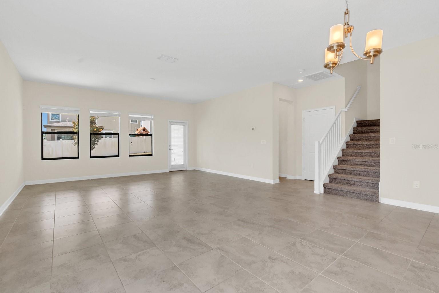 Características internas: Kitchen/Family Room Combo, Living Room/Dining Room Combo, Primary Bedroom Main Floor, Walk-In Closet(s), Window Treatments