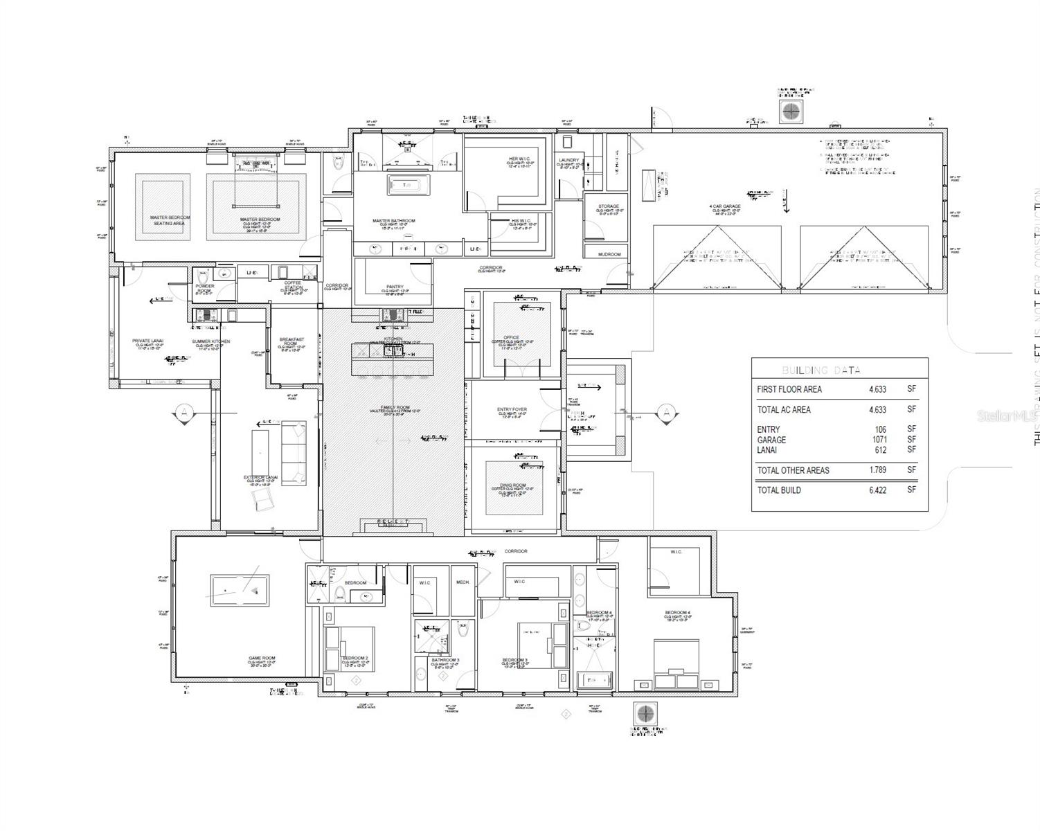 Características internas: Eat-in Kitchen, High Ceilings, Kitchen/Family Room Combo, Open Floorplan, Primary Bedroom Main Floor, Solid Surface Counters, Thermostat, Tray Ceiling(s), Vaulted Ceiling(s), Walk-In Closet(s), Wet Bar