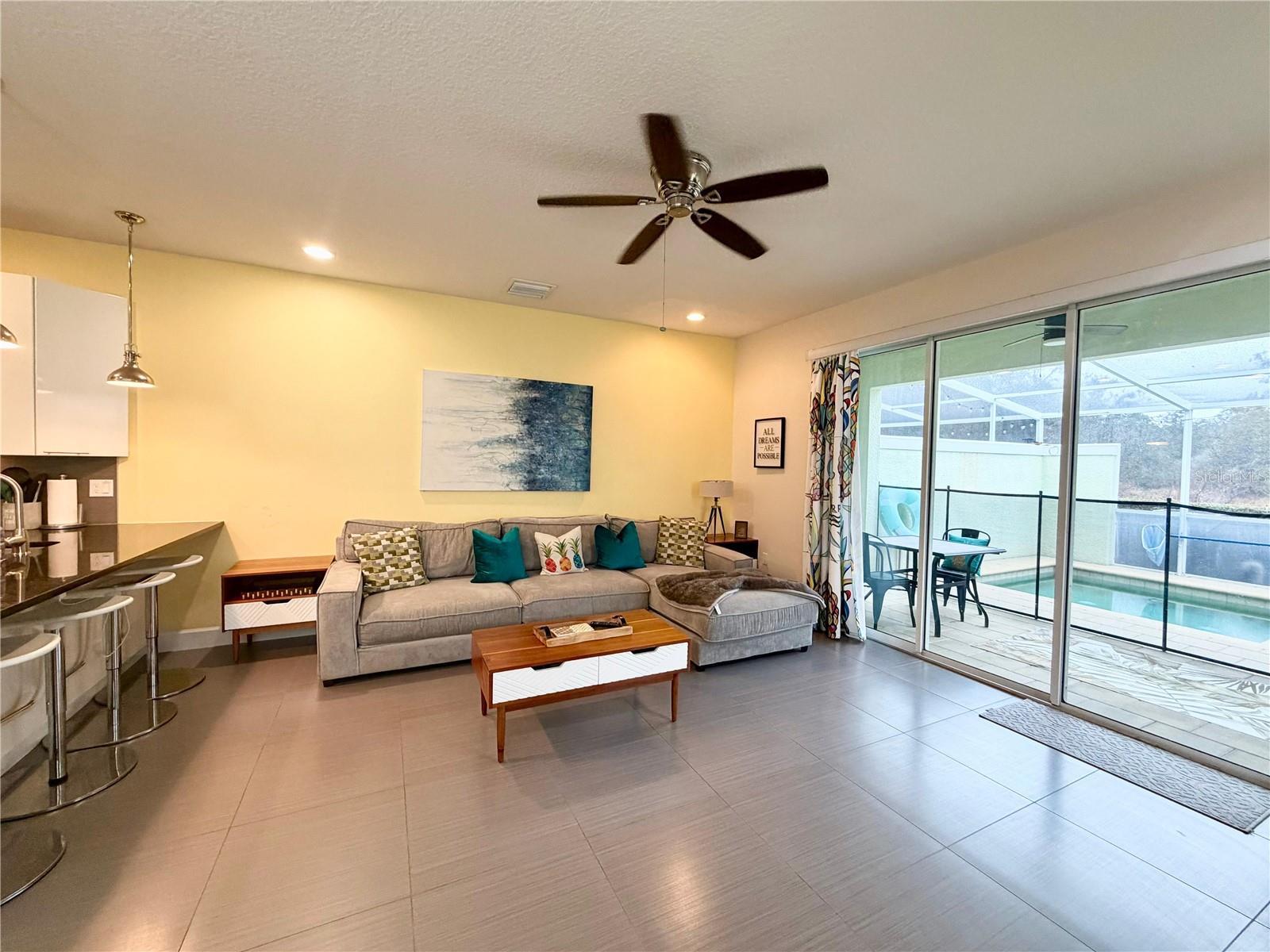 Características internas: Ceiling Fans(s), Eat-in Kitchen, Kitchen/Family Room Combo, Living Room/Dining Room Combo, Open Floorplan, PrimaryBedroom Upstairs, Stone Counters, Thermostat, Walk-In Closet(s)