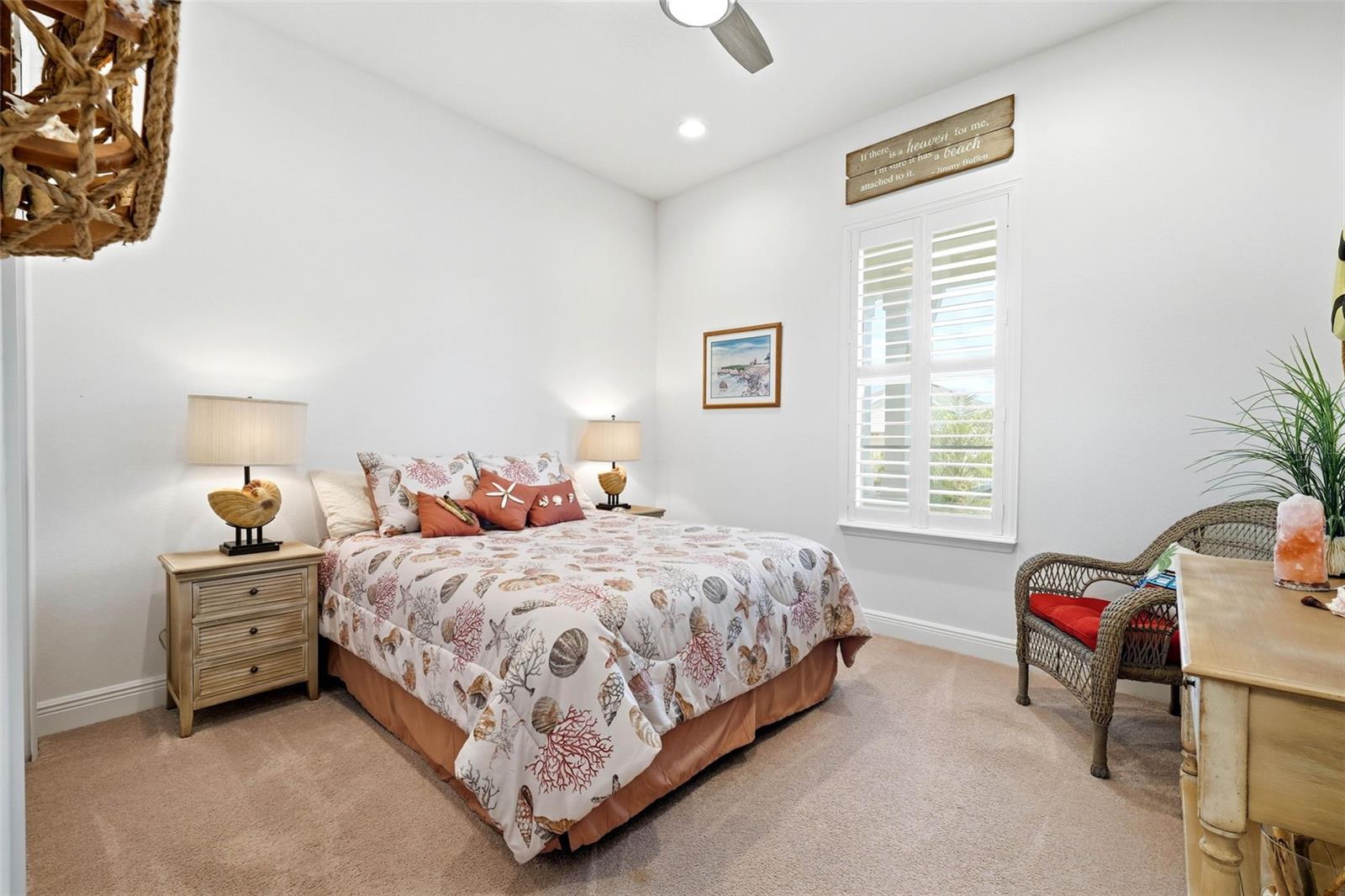 Características internas: Built-in Features, Ceiling Fans(s), Dry Bar, Eat-in Kitchen, High Ceilings, Kitchen/Family Room Combo, Open Floorplan, Primary Bedroom Main Floor, Smart Home, Solid Surface Counters, Stone Counters, Thermostat, Tray Ceiling(s), Walk-In Closet(s), Window Treatments