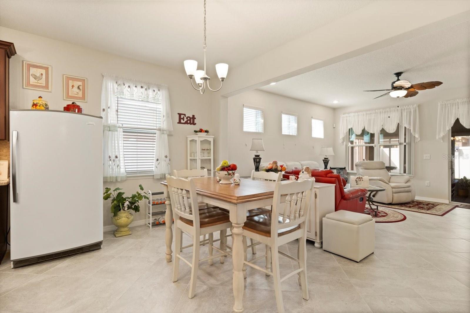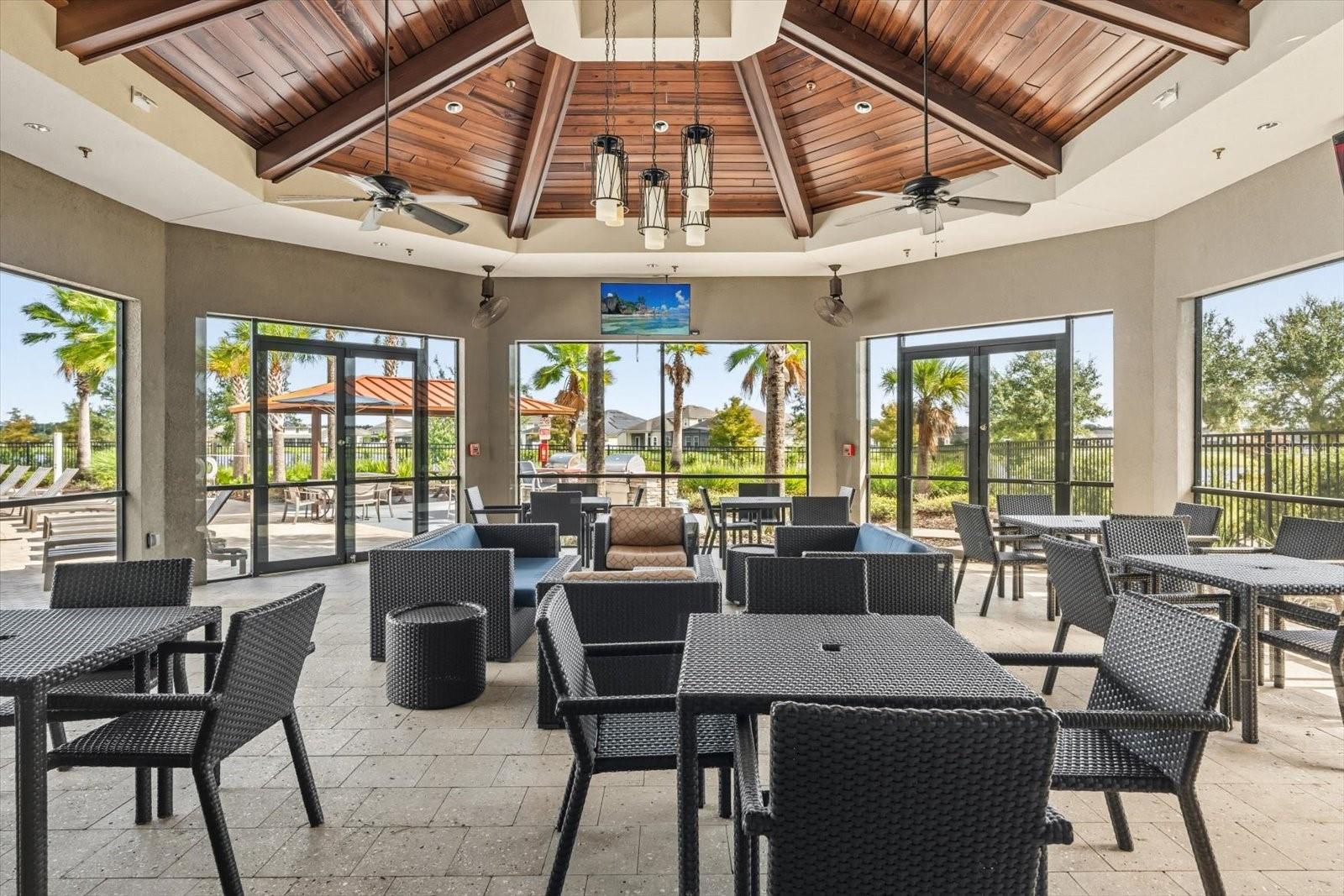 Características internas: Eat-in Kitchen, High Ceilings, Kitchen/Family Room Combo, Open Floorplan, Solid Surface Counters, Solid Wood Cabinets, Tray Ceiling(s), Walk-In Closet(s)