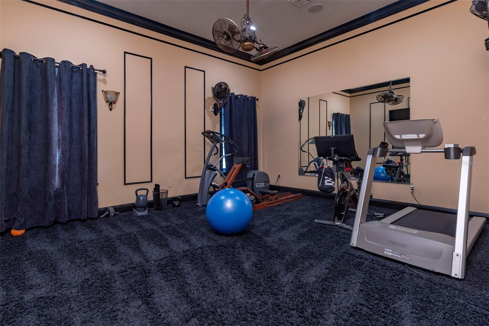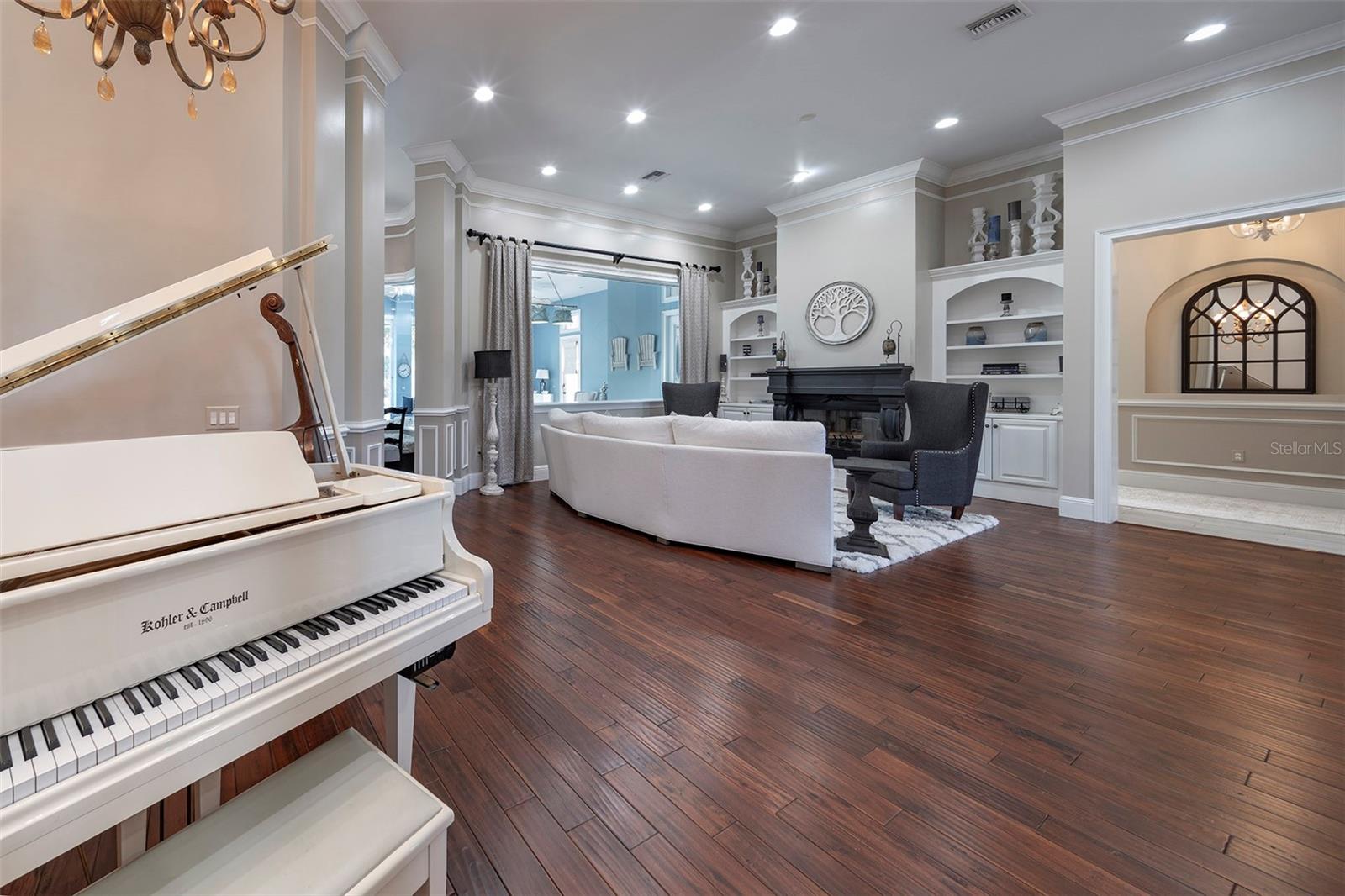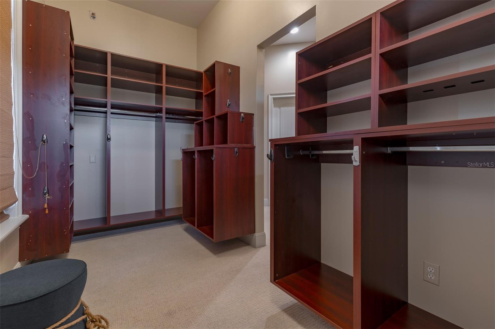 Características internas: Ceiling Fans(s), Central Vaccum, Chair Rail, Crown Molding, Eat-in Kitchen, High Ceilings, Kitchen/Family Room Combo, Open Floorplan, Primary Bedroom Main Floor, Solid Surface Counters, Solid Wood Cabinets, Split Bedroom, Walk-In Closet(s), Window Treatments