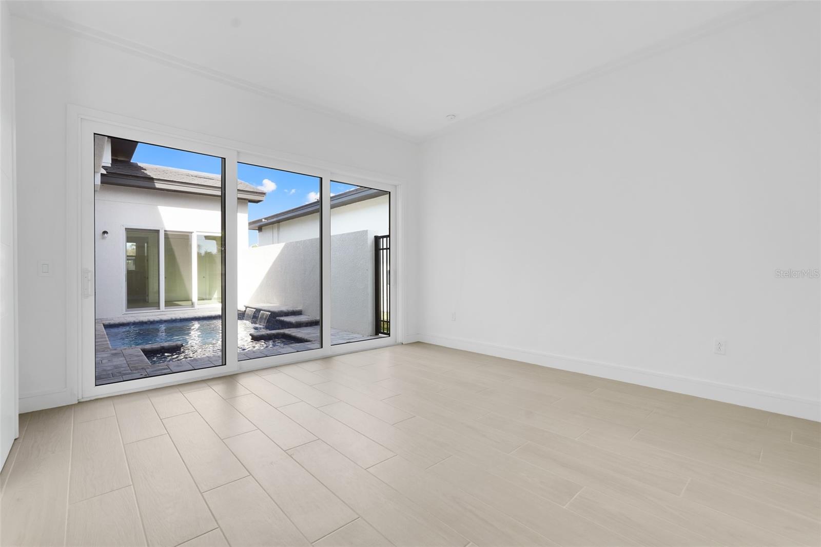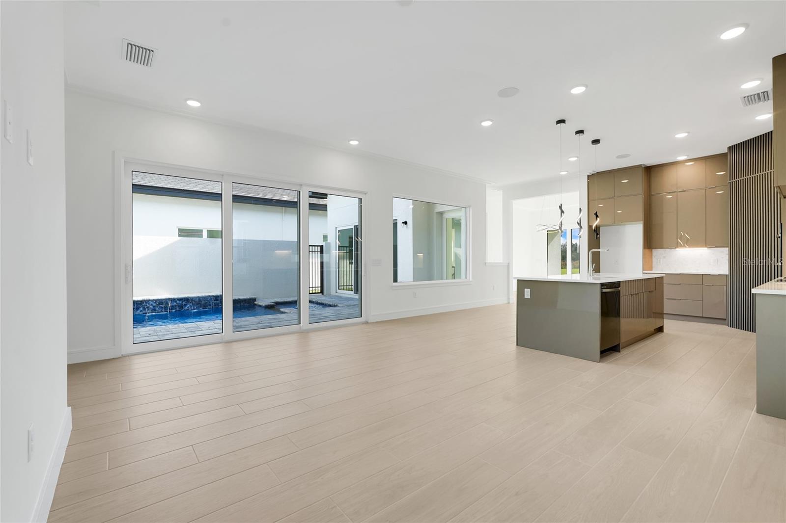 Características internas: Crown Molding, High Ceilings, Kitchen/Family Room Combo, Open Floorplan, Smart Home, Solid Surface Counters, Walk-In Closet(s)