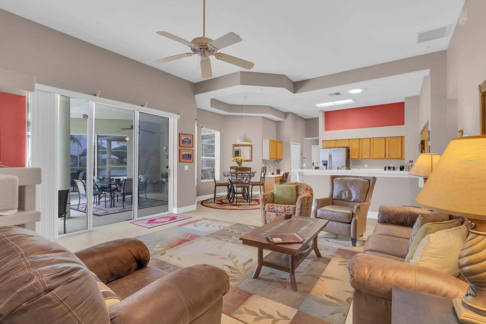 Características internas: Built-in Features, Ceiling Fans(s), Eat-in Kitchen, High Ceilings, Kitchen/Family Room Combo, Living Room/Dining Room Combo, Open Floorplan, Primary Bedroom Main Floor, Split Bedroom, Vaulted Ceiling(s), Walk-In Closet(s), Window Treatments