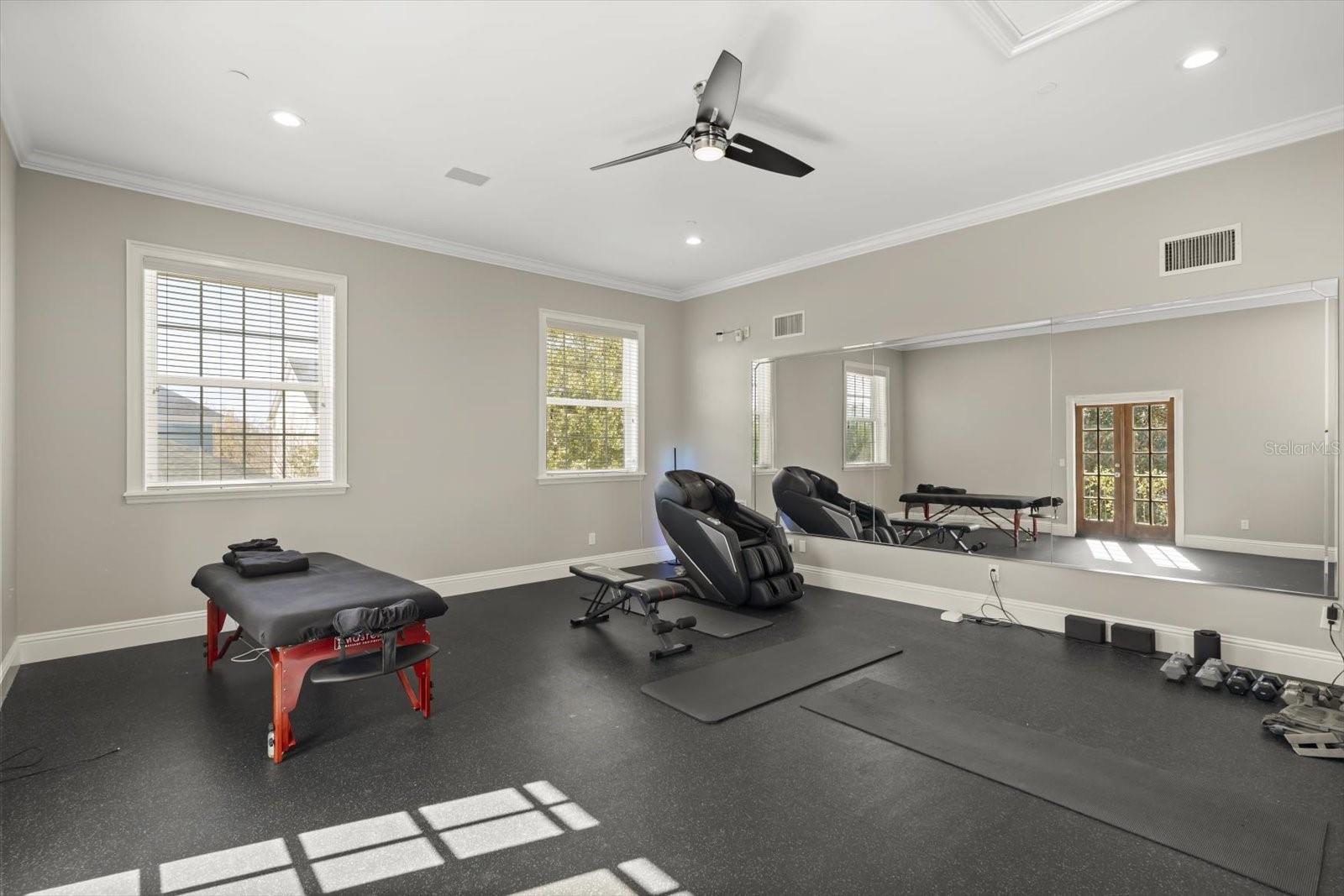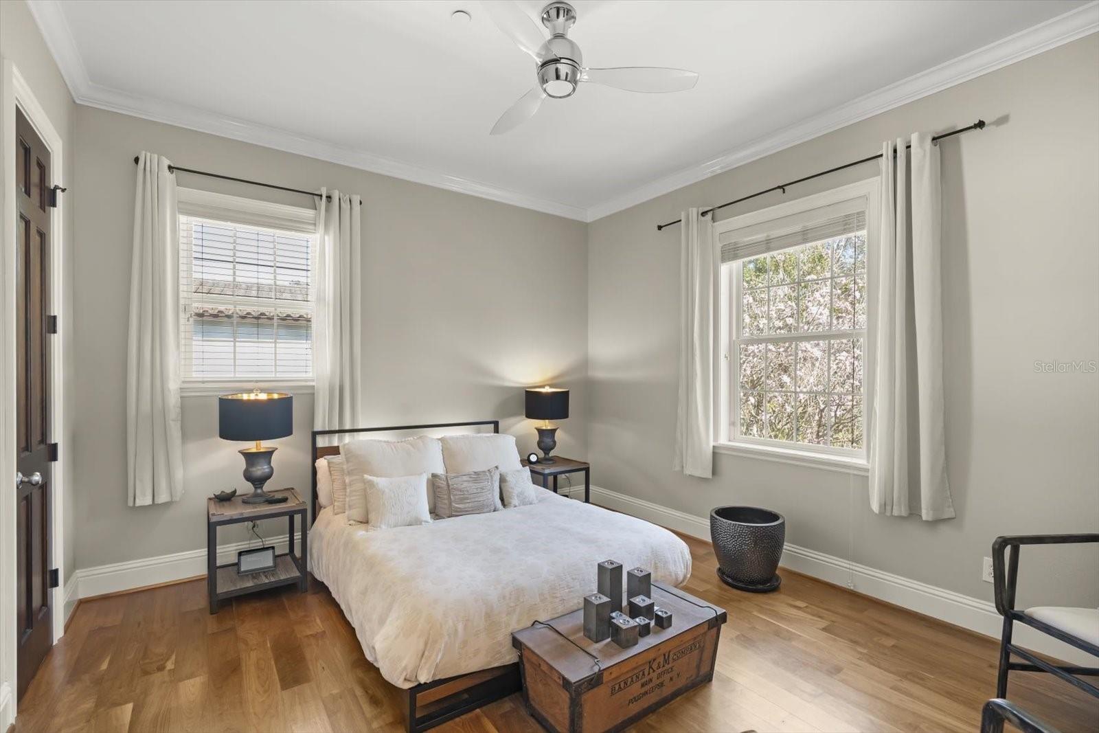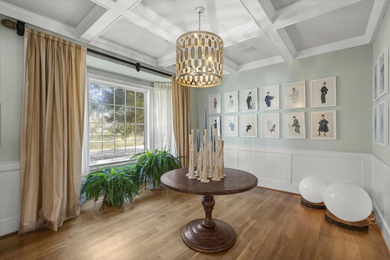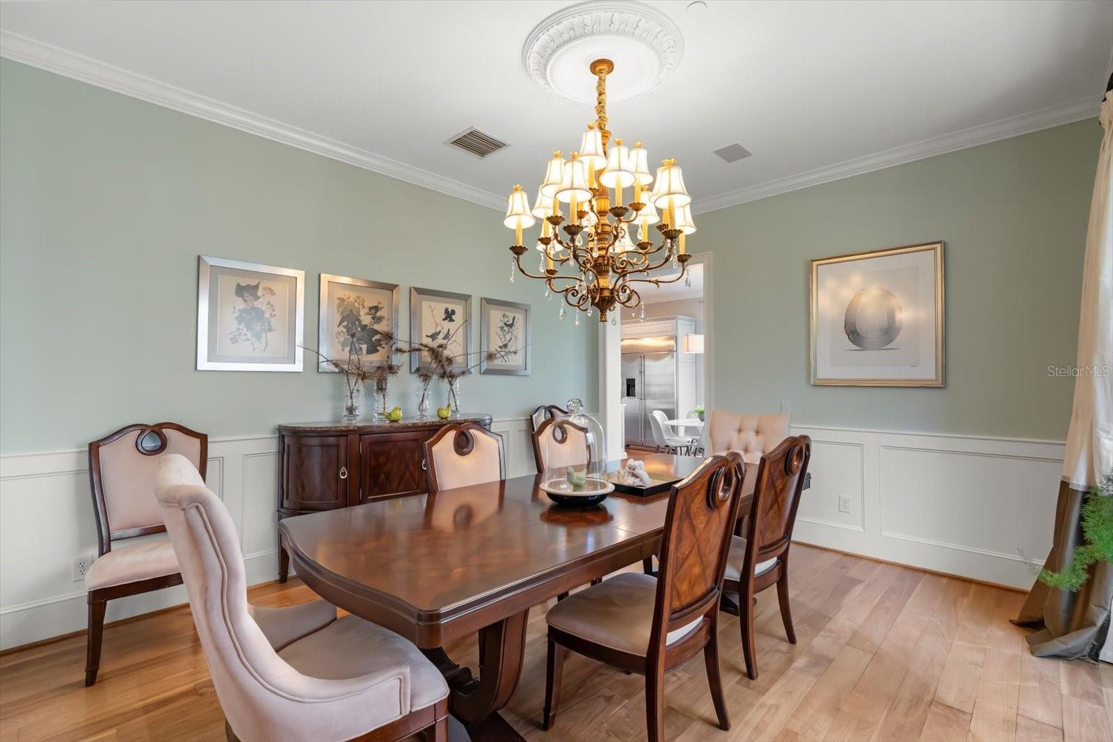 Características internas: Built-in Features, Ceiling Fans(s), Crown Molding, Dry Bar, Eat-in Kitchen, High Ceilings, Kitchen/Family Room Combo, Primary Bedroom Main Floor, Solid Surface Counters, Solid Wood Cabinets, Walk-In Closet(s), Wet Bar, Window Treatments