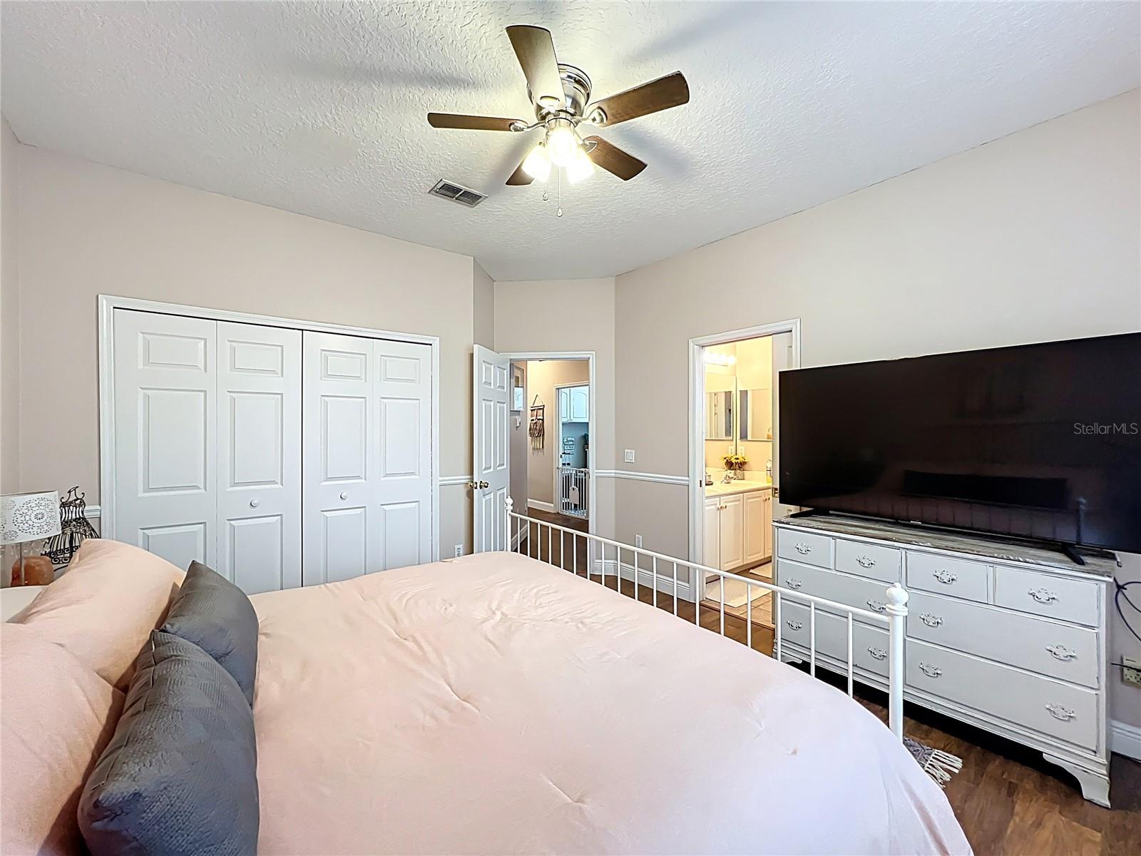 Características internas: Built-in Features, Ceiling Fans(s), Eat-in Kitchen, High Ceilings, Kitchen/Family Room Combo, Other, Primary Bedroom Main Floor, Solid Surface Counters, Split Bedroom, Stone Counters, Thermostat, Walk-In Closet(s), Wet Bar, Window Treatments