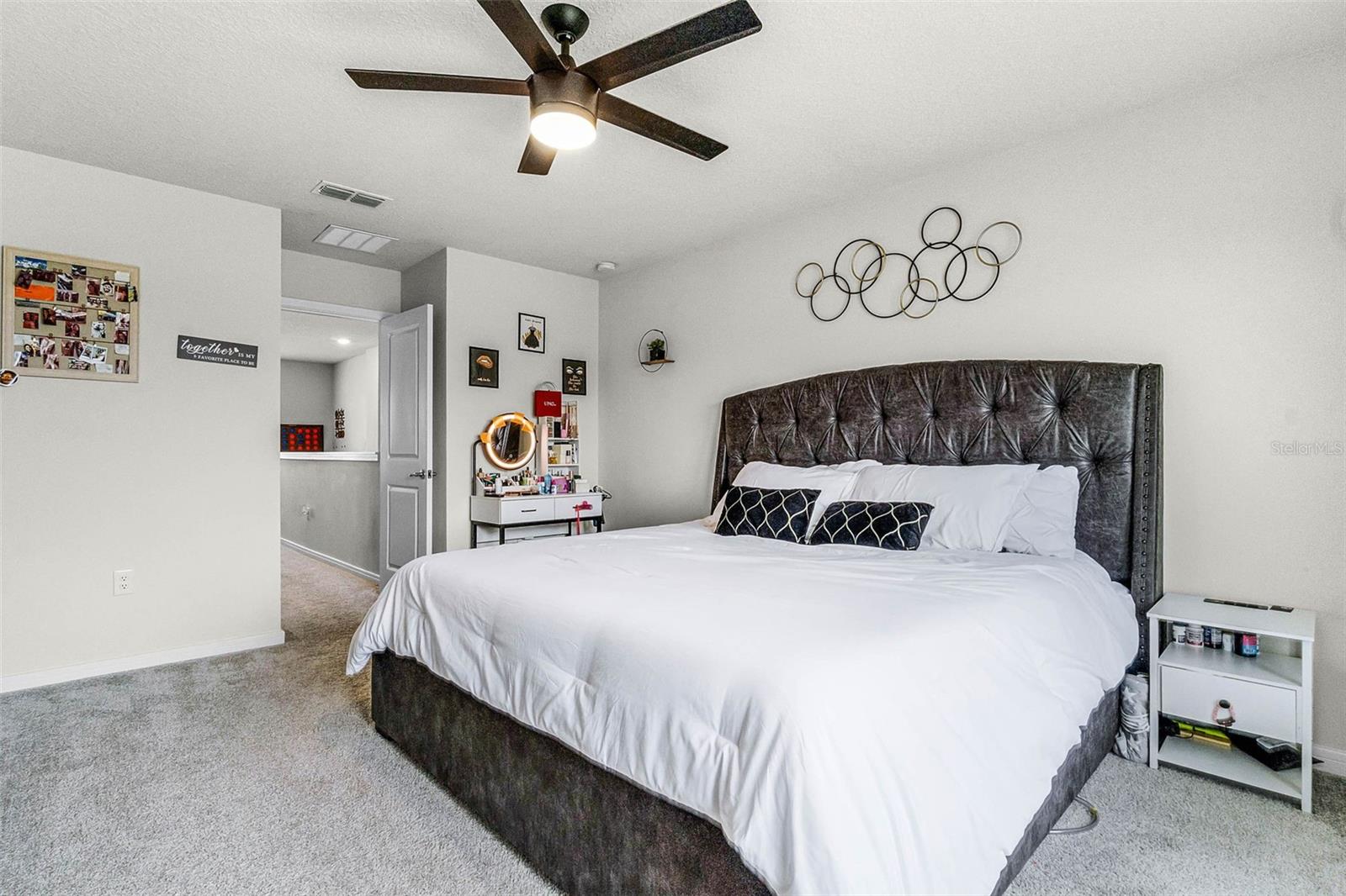 Características internas: Ceiling Fans(s), High Ceilings, Thermostat, Walk-In Closet(s)