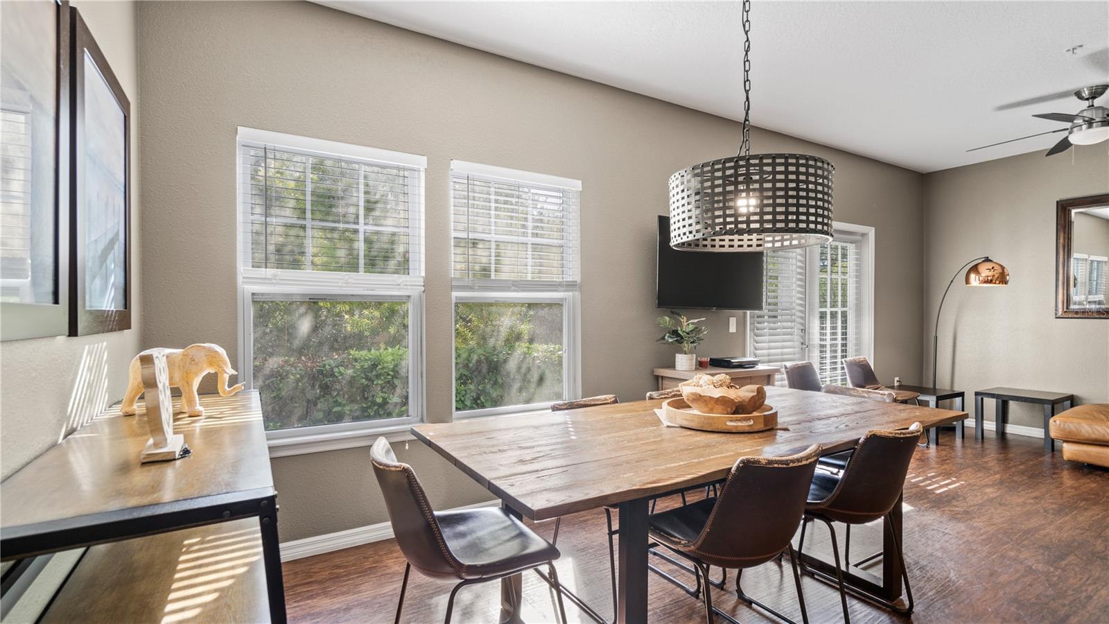 Características internas: Ceiling Fans(s), Living Room/Dining Room Combo, Solid Surface Counters, Walk-In Closet(s), Window Treatments