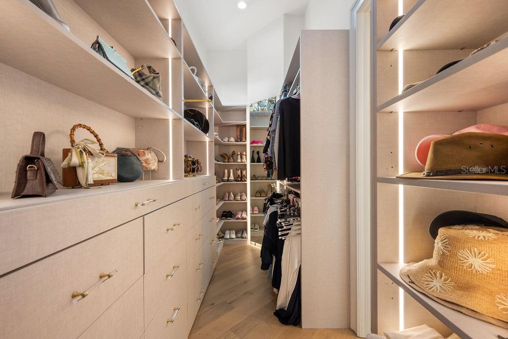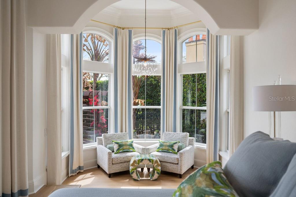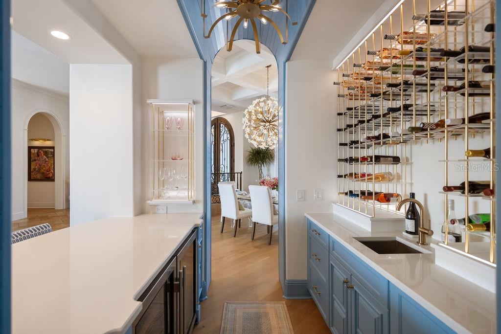 Características internas: Built-in Features, Ceiling Fans(s), Central Vaccum, Coffered Ceiling(s), Crown Molding, Eat-in Kitchen, High Ceilings, Pest Guard System, Primary Bedroom Main Floor, Smart Home, Solid Wood Cabinets, Split Bedroom, Stone Counters, Thermostat, Walk-In Closet(s), Wet Bar, Window Treatments
