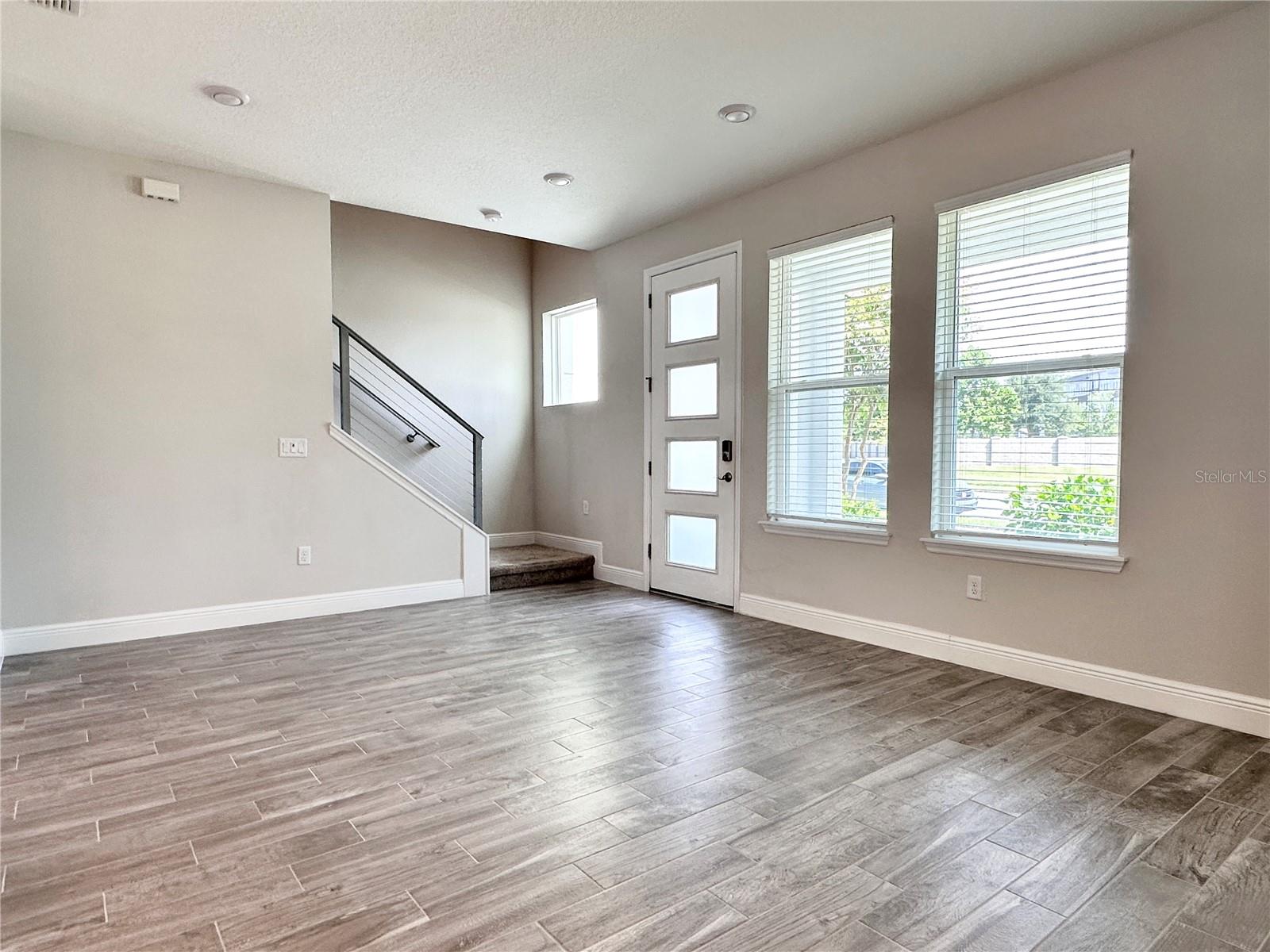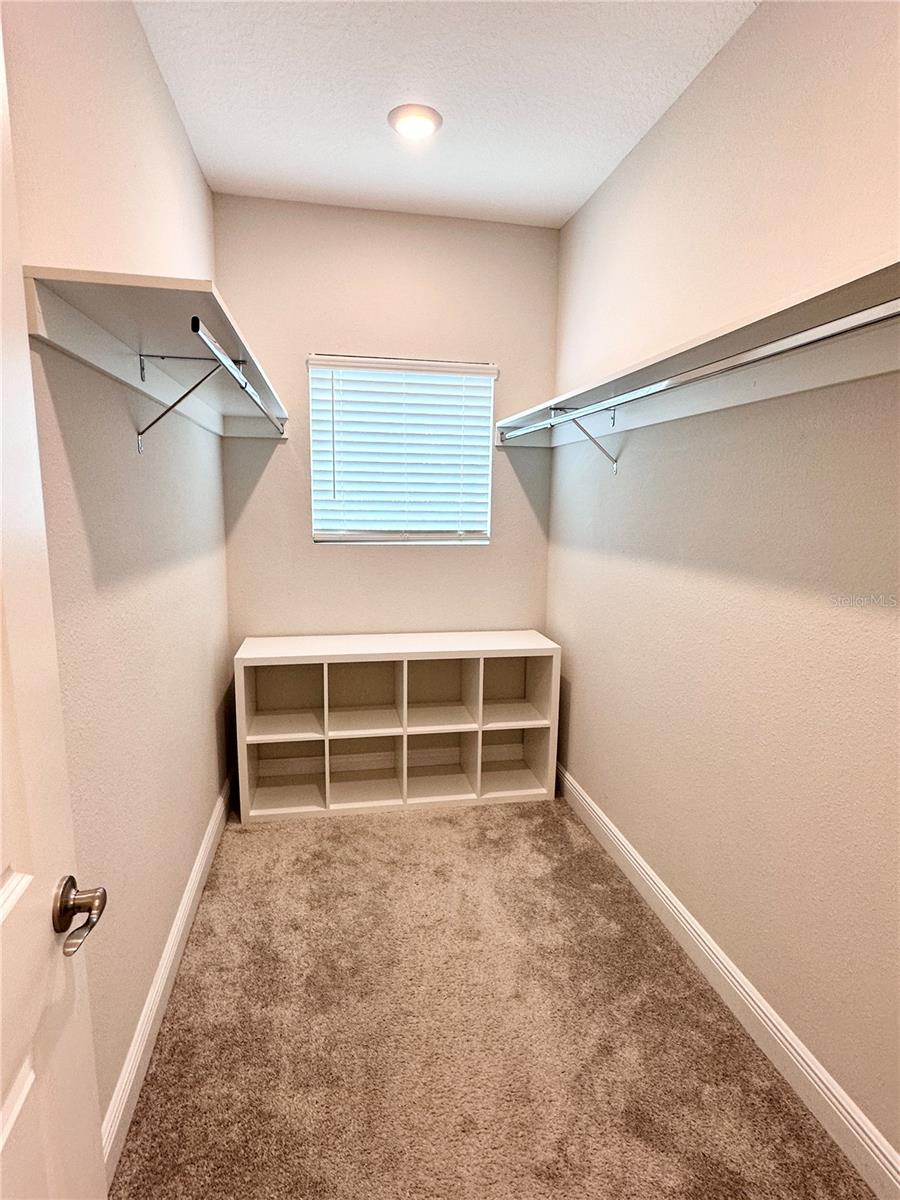 Características internas: Eat-in Kitchen, High Ceilings, Open Floorplan, PrimaryBedroom Upstairs, Solid Surface Counters, Thermostat, Walk-In Closet(s)
