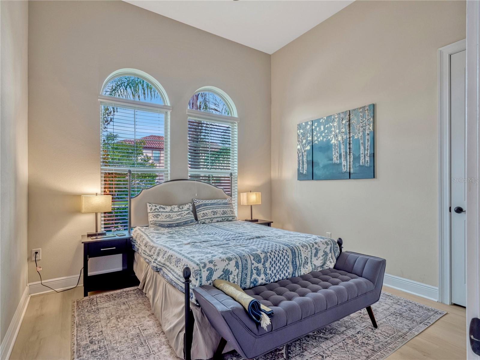 Características internas: High Ceilings, Kitchen/Family Room Combo, Open Floorplan, Primary Bedroom Main Floor, Stone Counters, Walk-In Closet(s)