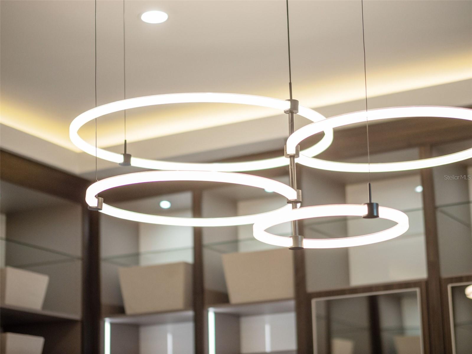 Características internas: Built-in Features, Cathedral Ceiling(s), Ceiling Fans(s), Dry Bar, Eat-in Kitchen, High Ceilings, Kitchen/Family Room Combo, Open Floorplan, Primary Bedroom Main Floor, Solid Wood Cabinets, Split Bedroom, Stone Counters, Thermostat, Tray Ceiling(s), Vaulted Ceiling(s), Walk-In Closet(s), Wet Bar, Window Treatments